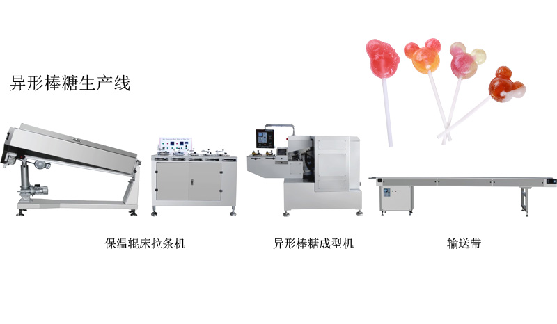 适用于异形棒棒糖的生产,例如:扁圆形、椭圆形、大脚板及卡通异形棒棒糖的生产(形状可根据客户要求而定)。