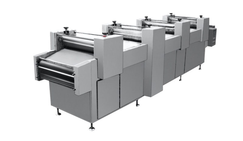该机采用双带同步送料,自动洒粉,压面厚度可调,条形粗细均匀,切割长短一致。适用于沙琪玛、金果、江米条等面制品。