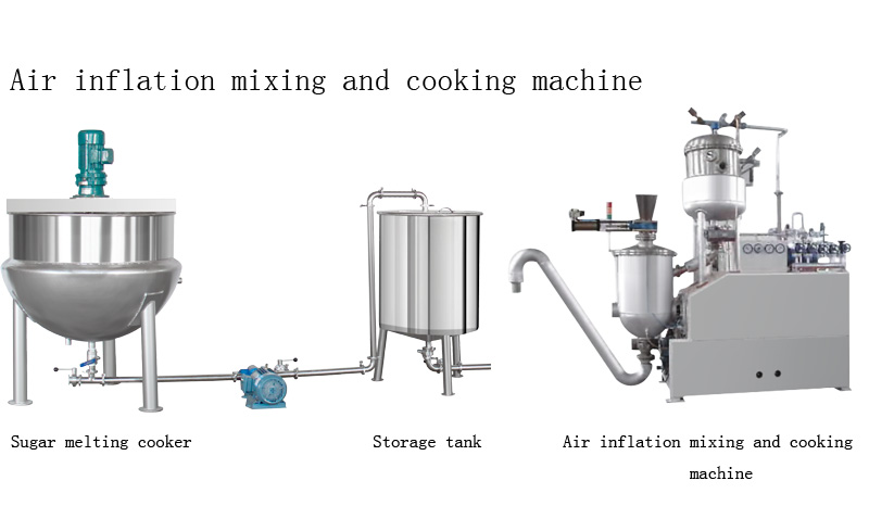 The machine has relatively high control precision, so the syrup boiled by this machine has very good quality. The machine is suitable for aerating boiling of such products as creamy candies, nougats, fruit candies, spun sugar and candy bar core materials.